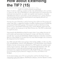15th in a series of posts on parking, includes a letter written by Dana Grubb: "I suggested another possible funding source to build the anticipated Polk Street garage. This source would use the borrowing power of Tax Increment Financing (TIF), which already exists and has been used for development in the Beth Works site. The TIF is scheduled to expire in 2020..."