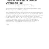 "Hope for Change in Casino Ownership" - 20th in a series on parking