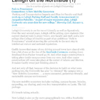 Lehigh University is on the move! Literally as well as figuratively. Over the next several years, Lehigh will be adding 1500 students (the current student body is about 7000), 200 faculty and staff, and a new college (the College of Health) as part of an ambitious “Path to Prominence” aimed at moving the university to the next step in intellectual stature and national reputation.