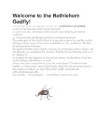 I like unique for Bethlehem "To me, Gadflies are sacred. Gadflies are the unofficial officials of a town, self-appointed to be the voice of the people. And one of the things I wanted to be sure to do with this blog is memorialize the gadflies. The mayors and prominent Council members will have plenty written about them in permanent, indelible ways in the official annals of our town –and deservedly so..."