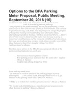 Options to the BPA Parking Meter Proposal, Public Meeting, September 20, 2018 - 16th in a series on parking Options offered to the BPA/Desman proposal offered at the public meeting September 20, 2018.